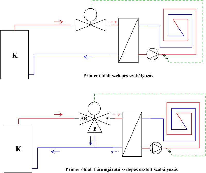 Katt: azért kell, mert a jól méretezett hőcserélő, a primer oldalhoz közel azonos hőmérsékletet tud előállítani a szekunder oldalon, és ezért szabályozni kell a primer vagy szekunder oldalt, mert ugye ha 60°C-os kazán előremenőből készít 50 - 55°C-os előremenőt a hőcserélő akkor azt azért nem engedjük rá a padlófűtésre!