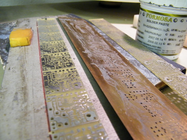 Megmértem, van 0.2 és 0.3 mm-es is. Sárgarézből vannak.Az egyik talán vörösréz,bár elég rugalmas. Szerintem abból dolgoztak, ami épp kéznél volt. Én nemrég egyet csináltam rotalemezből (ez volt) Ez valami aluötvözet, a nyomdaiparban használták. Elég kemény és hasonlóan rugalmas, mint a sárgaréz lemez. Az ónpaszta beszerzési forrása: PEK 3 KFT Bp. Kőbánya, Állomás u 2. 4-5 éve vettem, fél kiló 10.000.- körül volt. Ólomtartalmú, ami azért jobb, mint az ólommentes, mert alacsonyabb az olvadáspontja. A nyáklemezek üzemben készülnek, jó minőségűek. Ezek is mind már átvett gyártási témák. Igaz, ezek egyoldalasak. Az IC lábaknál cikcakkszerűen vannak kifúrva a lyukak.