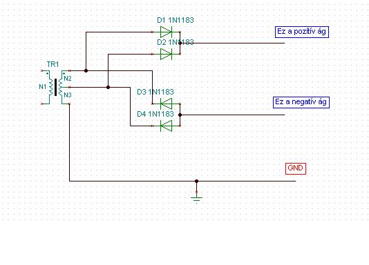 Akkor én ezt nemértem, a rajzon világosan le van rajzolva hogy 1-1 dióda kell a + és a - ág kialakításához. Biztos ugyanarról a rajzról beszéllünk? Én a trafó sekunder kivezetésére kötöttem, arra ahová alapból is rá van kötve két iylen dióda.
