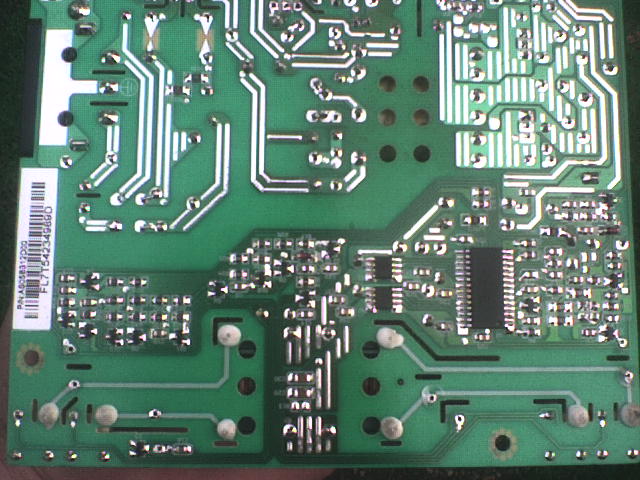 szóval az inverter két nagy fesz kondija az nem is kettő hanem négy legalábbis négy hiányzó jelölés van ahol szemmel láthatóan kiszedtek valamit hátoldalon nincs rózsaszinhasáb csak smd alkatrészek gondolom a vezérlése az inverternek