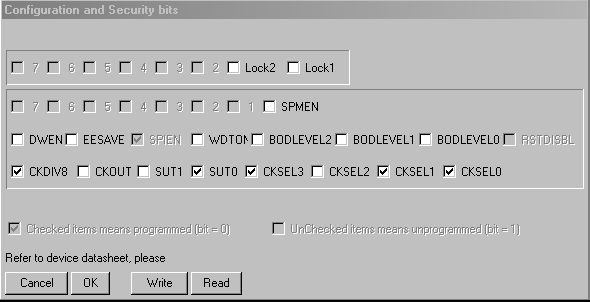 PonyProg forditottan jelzi a fuse bit beallitasokat.