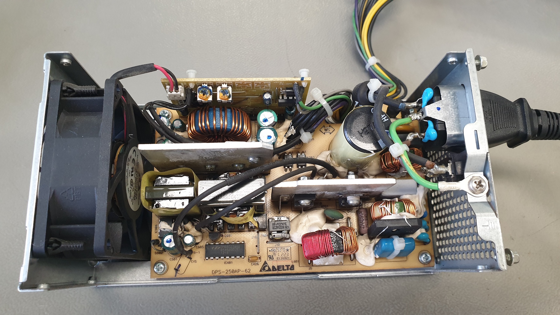 Nem teljesen PC de szerver táp. Van egy Fujitsu DPS-250AB-62A típusú szerver tápom. Sajnos kapcsolási rajzot nem találtam hozzá. Szeretném a kimeneti feszültséget feljebb állítani 14V-ig. Van-e valakinek tapasztalata illetve ötlete a megoldásra? A vezérlő IC típusa CM6802. Van egy kis panel amin van két trimmer aminek nem sikerült kideríteni a funkcióját. Kapcsolási rajzot vagy egyéb segítséget szívesen fogadok!