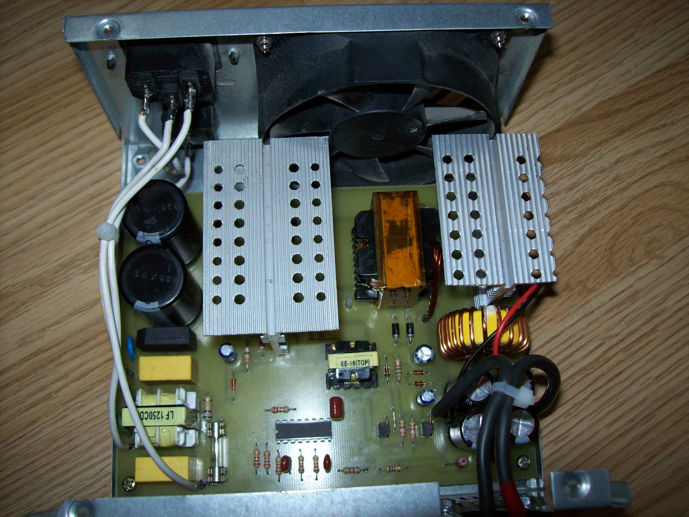 Szerinted 500W-os PC táptrafóval ha áttekerném lehetne-e 12V 40A-es tápot csinálni? 2x1000µF 200V puffer a primer oldalon, 6x2200u 25V a szekunder oldalon. Szekunder oldal 2x(3 szál párhuzamosan tekerve). 3db SBL2040 kettősdióda egyenirányító a 6 tekercsvégre. SOT93 tokos kapcsolótranyók. 12cm-es ventilátor, a félvezetők nagyobb bordán.