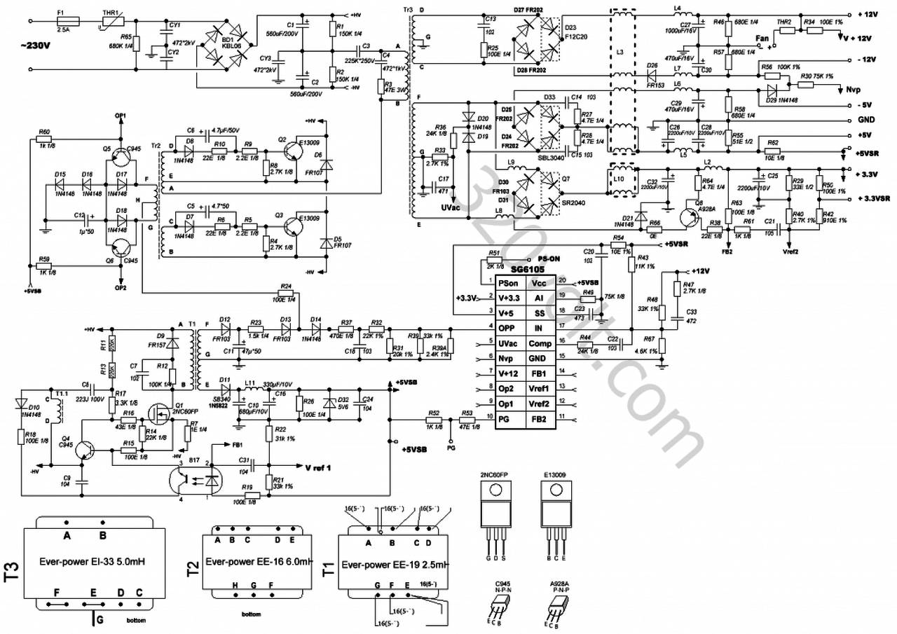 Ilyen tápot szeretnék javítani, mert a vsb része eldurrant.(Codegen 400W SG6105dz-vel)