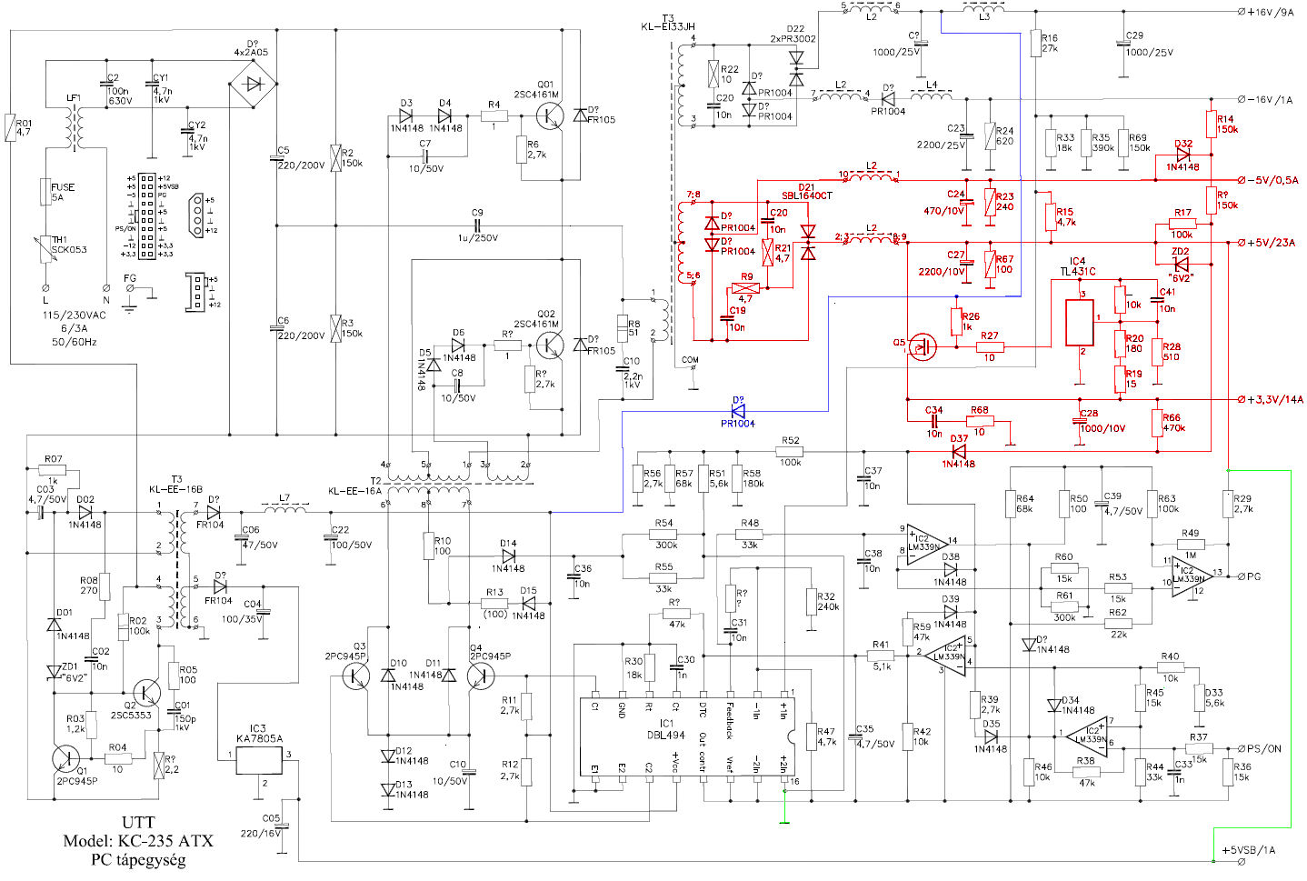 Nekem úgy tűnik, hogy a negatív ágak feszültsége ugyan nincs a feszültségszabályzó körben, viszont azok hiánya tilthatja a szabályozást a TL494 4-es, ill. 16-os lábán. (Ilyet a legtöbb ATX tápegységben lehet látni)