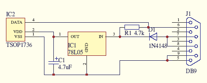 Ezt a kapcsolást épitettem meg de nem nagyon akar müködni. Lemértem hogy hol mekkora a feszültség és az SFH5110-nek a tápágán nem túl gyakran lehet 5V-ot mérni leggyakrabban 4,96 de ez folyton változik 4,96 V-tól 5 V-ig. Ez nem lehet gond?