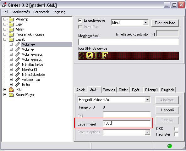 Egyetlen kérdésem lenne a girderhez, hogy a win hangerejének növelését ill csökkentését milyen bill kombinációra kell beállítani?