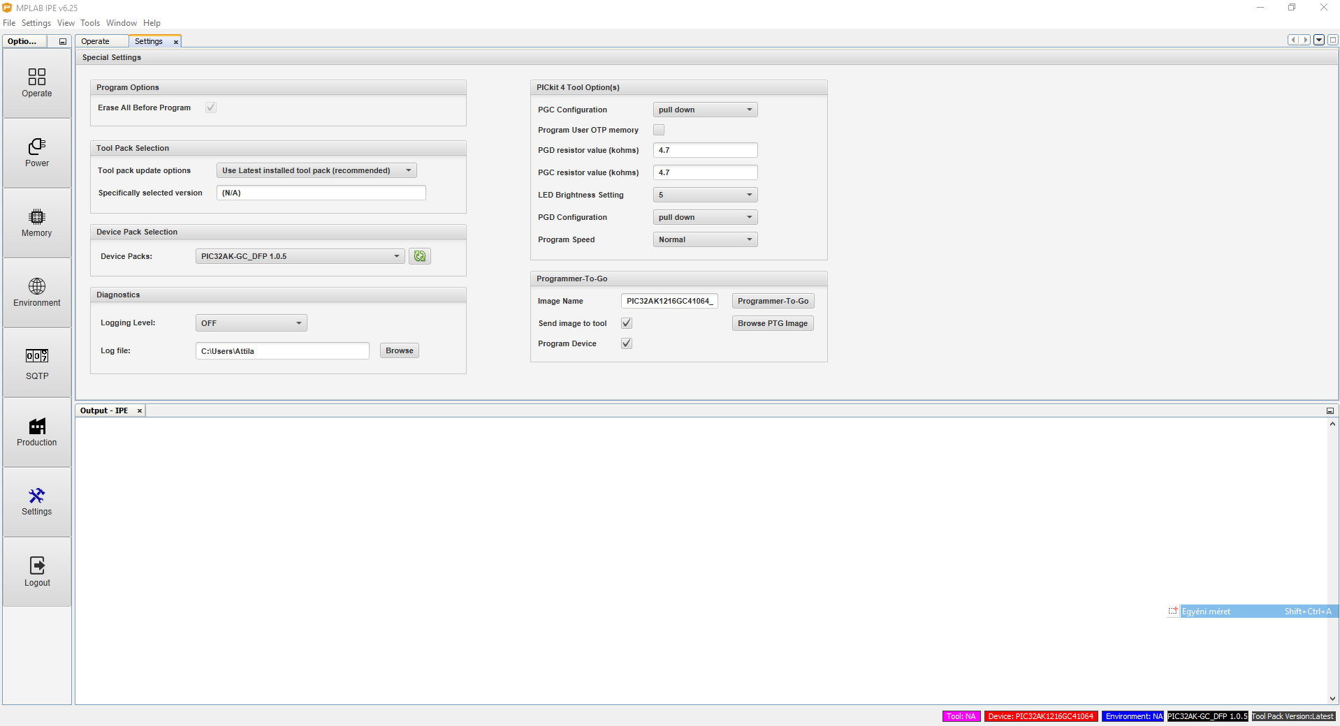 MPLAB IPE csatlakozási probléma PICKIT3 és PICKIT4 eszközökhözAzzal kezdődött a problémám hogy a 6.05 verziójú MPLAB X ide helyett feltelepítettem az új 6.25 verziójút mert az új PIC32AK szériát ez már támogatja.Probléma a 6.25 verziójú IPE nem látja a PICKIT3-ast. Megoldás feltelepítése a 6.05 verziójúnak, de csak az MPLAB IPE. Megjegyzem teljesen mindegy helyfoglalás szempontjából, mert a két program így is 19 GB-ot foglal el. Na jó. Ezen túl voltam. Ma délelőtt úgy gondoltam hogy a sok évvel ezelőtt vásárolt PICKIT4-et beüzemelem egy PIC32MX320F064H mikrovezérlő égetéssel. A 6.25 verziójú MPLAB IPE -vel szerettem volna, de ráment az egész délelőttöm és nem volt hajlandó csatlakozni a PICKIT4 a PIC32-höz. Kínomban megpróbáltam a 6.05 verziójúval. Az MPLAB IPE 6.05 gondolkodott egy kicsit, letöltött egy új firmware-t és sikeresen égette a HEX-et. Annyira jó lenne, ha nem kellene 10GB-nyi programot telepíteni egy nyavalyás égetés miatt.