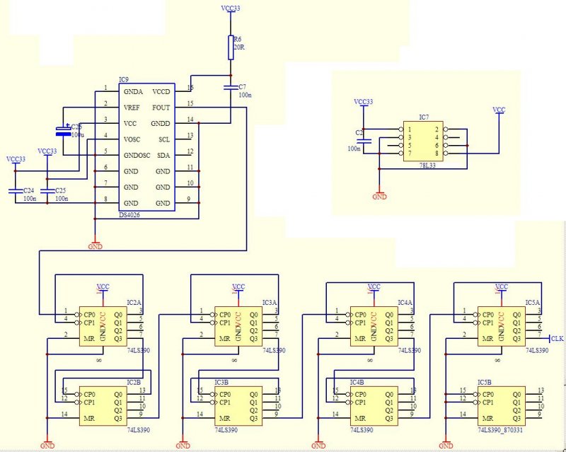 ![]() Előzmények, rendeltem I2C-s órát maximéktól ingyen, de nem sikerült összehozni picBasicba, aztán rendeltem olyat, ami párhuzamos vezérlésű, elvitt volna csomó lábat a PICből. És most jön a képbe: Annó írtam egy óra progit, de az volt a gond, hogy nehéz volt belőni az 1 szekundumot. Így hát rendeltem (szintén maximéktól) egy DS4026 TCXO-t. (10MHz, hőkompenzált kristály) A 10 Megát leosztottam 74390ekkel, ja meg a tcxo-nak kellett 3,3 volt. bonyolultnak hangzik, de nagyon komoly lett, és nem foglal sok helyet. És az egész cuccnak kell 1 láb, amit interruptra szépen lehet nyomni