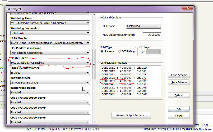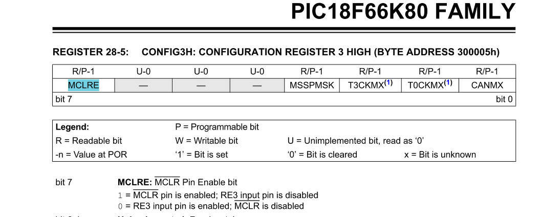 akkor a CONFIG3H regiszter 7. bitjét törölni kell. Ezt az edit projectben tudom megtenni, meg is történik a váltás, viszont az MCLR tiltás után az RG5 van engedélyezve. Viszont az RE3