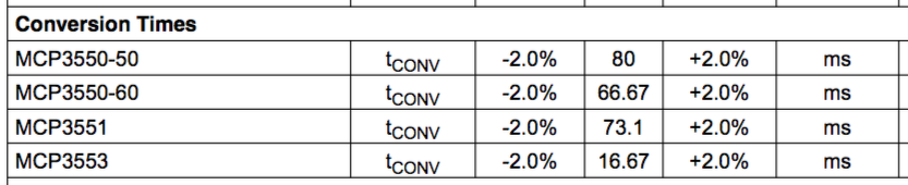 Tesztelve élőben, működik nálam is. Az adatlapban megadott átalakítási idő, némi csúszással/mérési hibával, ki is jön. MCP3550-50