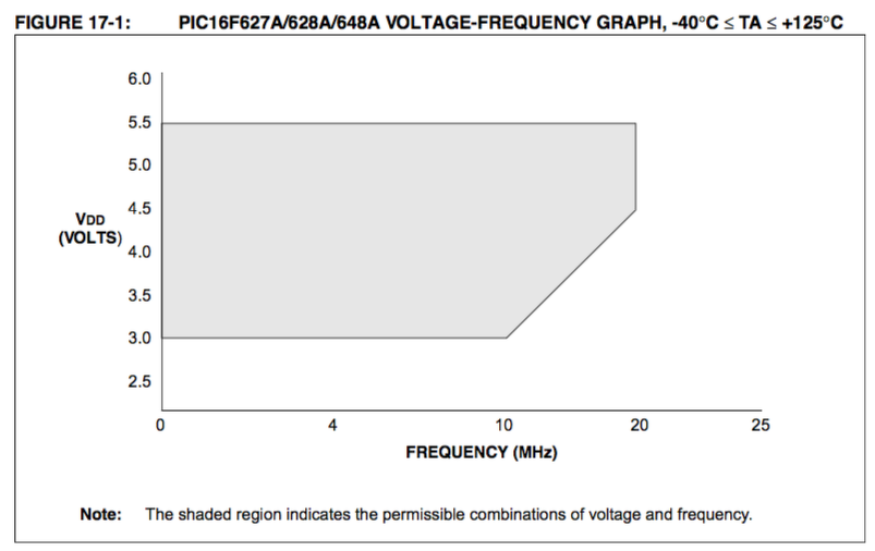 10 MHz-es órajelig elég a 3 V-os tápfeszültség is a PIC16F628A-nak.