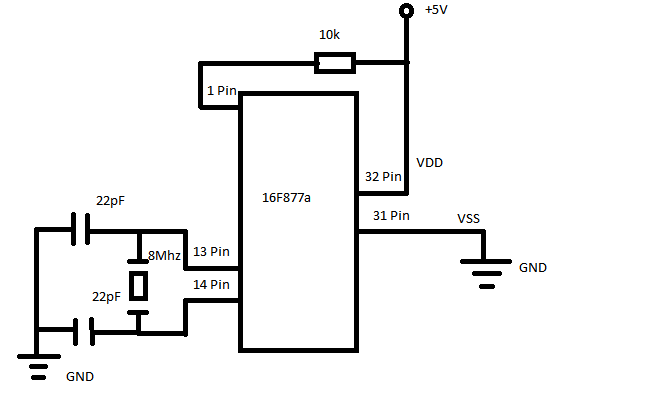 A két db 100nF kerámia kondenzátor lemaradt a pic két oldalán a táp és a föld lábak közül. Lassan már óránként kell leírni.
