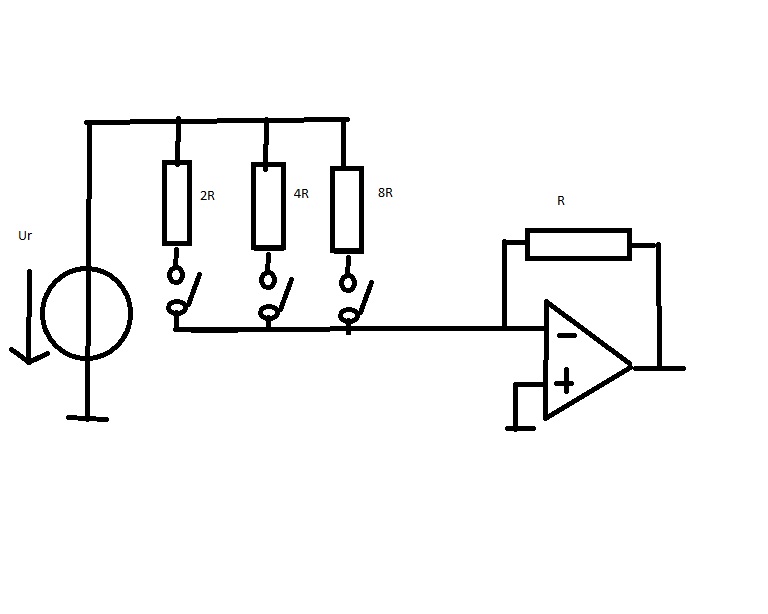 Olyan kérdésben kérnék kis segítséget, hogy kellene egy D/A-t rárakni egy Pic kimenetére. Ehhez kellene valami használható kapcsolás. A létrás R-2R jöhet szóba, vagy a súlyozott 2R, 4R, 8R. Az előzőnél az egyes ágakat a műv er.-re vagy földre kell kapcsolni (ez szerintem bonyolultabb). Így inkább az utóbbi megoldás tűnik jónak, ott az egyes ágakat kell be, vagy kikapcsolni a körbe. A (kép) Referencia fesz az a pic kimenete lenne, így 0, vagy 5 V. Illetve ami fontos, hogy a D/A kimenetre nekem 0-5V kell; 2 bites osztásban teljesen jó. 1. kérdés: A műv er milyen legyen? 2. kérdés: mekkora legyen az me. tápja? Az épített áramkörben lesz +12V és +5V, de ha +5-öt adok tápnak, akkor a kimeneten olyan 1-4V lesz az me. miatt. 3.kérdés: Ez a D/A így működhet? A 0V-on levő kimenet nem megy tönkre a +5v-os másik kimenet miatt?