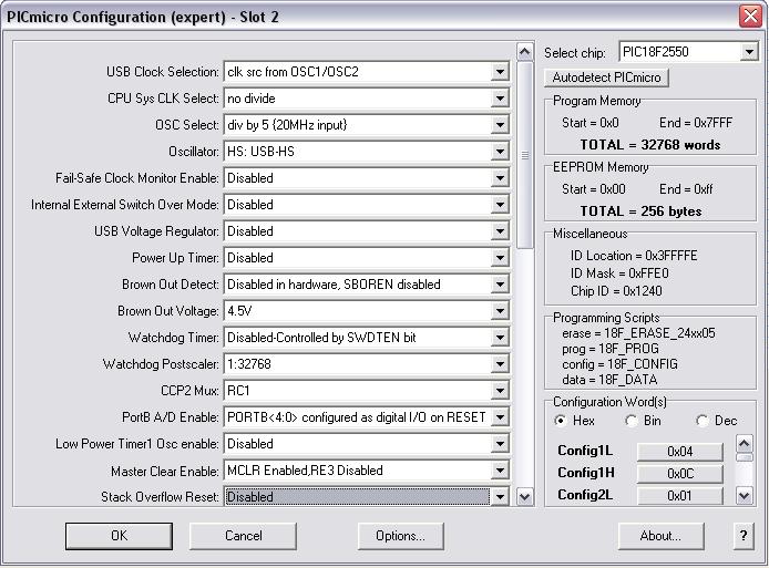 A konfig bitekhez nem nagyon értek, de igen a oszcilátor jól van beállítva, 20Mhz van beálítva és 20Mhz et használok. A konfig bitekben mit kell álítani?