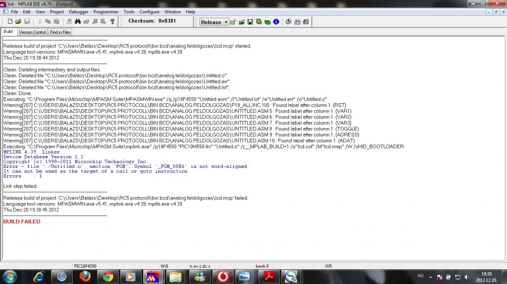 Szép estét! Egyik projektemet, valamiért nem sikerül lefordítanom, csatoltam a hibaüzenetet, kérem valaki segítsen! :O (esetleg adatmemóriát kellene lapozni?)