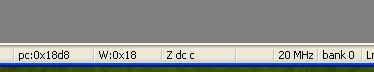 - A W értéke és az Órajel között a zdcc betüsorozat utal a STATUS bitjeire: Z - zero, dc - digit carry, c carry. Ha nagybetüt látsz, a flag értéke 1, ha kisbetüt, akkor 0. - A banksel egy macro. A fordító a megadott kifejezés 8. és 7. bitje szerint beállítja az RP1 ill. RP0 iteket egy normál midrange kontrolleren. Egy advanced midrange vagy 18F típuson a BSR gerisztert tölti fel a megfelelő értékkel (movlb utasítás használja). Lényeg az, hogy a forrásban nem kell rögzíteni at értéket, a fordító szamolja ki (jól). Ha egy programot átírsz más típusra (pl 16F628 -ról 16F88 -re, mert kinőtte a memóriát), automatikusan számítja a Bank értéket a regiszterekhez (pl. EEprom kezelése). A hozzászólás módosítva: Jún 28, 2013