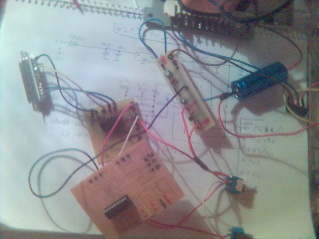 A PIC-es próbapanel hátulján pedig a foglalat lábára vannak ráforrasztva a vezetékek végei. /ma akartam venni dugdosós panelt, de nem volt a boltban/ Az LPT kábel 1 méteres.