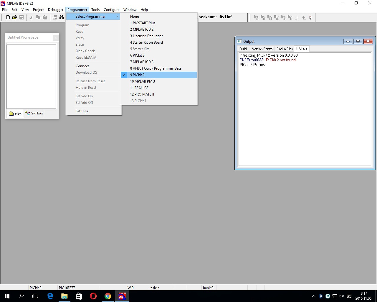 Eddig meg van csak a pickit2-re valamiért nem lehet kattintani.