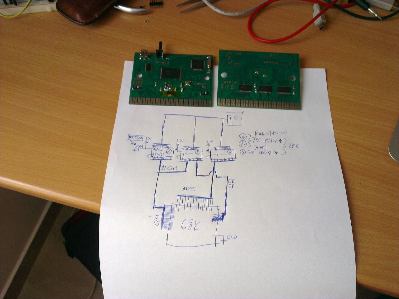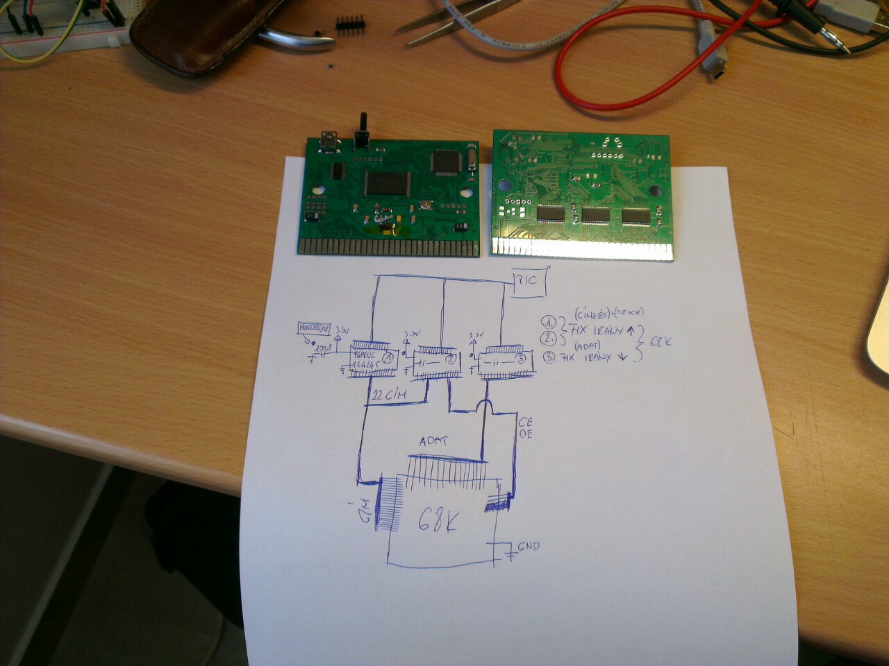 Azon a szintillesztőn direction és output enable vezérlés van. Mintha anno gondod lett volna vele, hogy a címbiteken kerested a hibát, aztán kiderült végül, hogy mégis szoftveres gondok vannak. Ha csak nincsenek áramkorlát ellenállások is a kapcsolásban, ezúttal egy szoftveres hiba elektronikailag is veszélyes tud lenni. Tönkreteheted a sega 68k-ját.