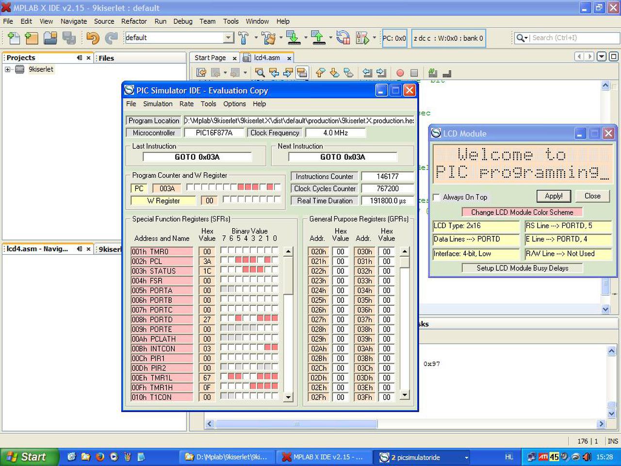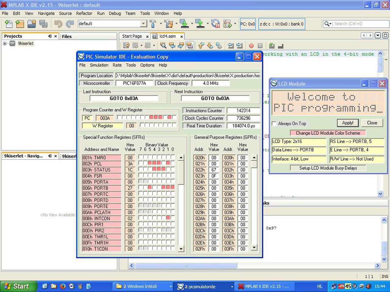Az a probléma, hogy egy BASIC-re kifejlesztett IDE szimulátorát használja az MPLAB-ban írt programjához. Így szerintem csak saját magával szúr ki, mert sok funkciótól elesik. Példának okáért a program követéstől, amit gondolom az MPLAB szimulátorában is megtalálni. Én csak arra akartam rávilágítani, hogy ha assembly nyelven szeretne megtanulni programozni, akkor arra koncentráljon és használja az MPLAB IDE-t, ha BASIC-ben, akkor pedig ezt. Nem jó keverni a dolgokat, mert abból ilyen problémák származnak.
