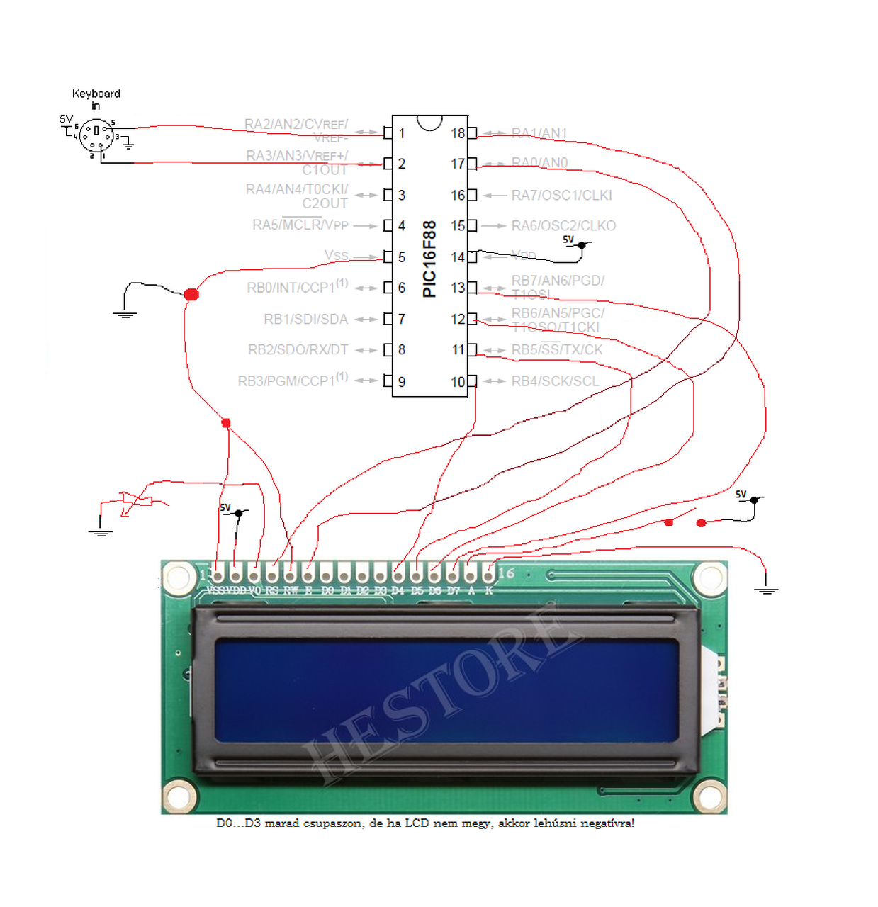 Jó, akkor hova kössem a potival a kontrasztot? Pozitívra vagy negatívra? És D0...D3 a negatívra? Vagy mi történik, ha csupaszon hagyom? A vagy K a pozitívja a háttérfénynek?