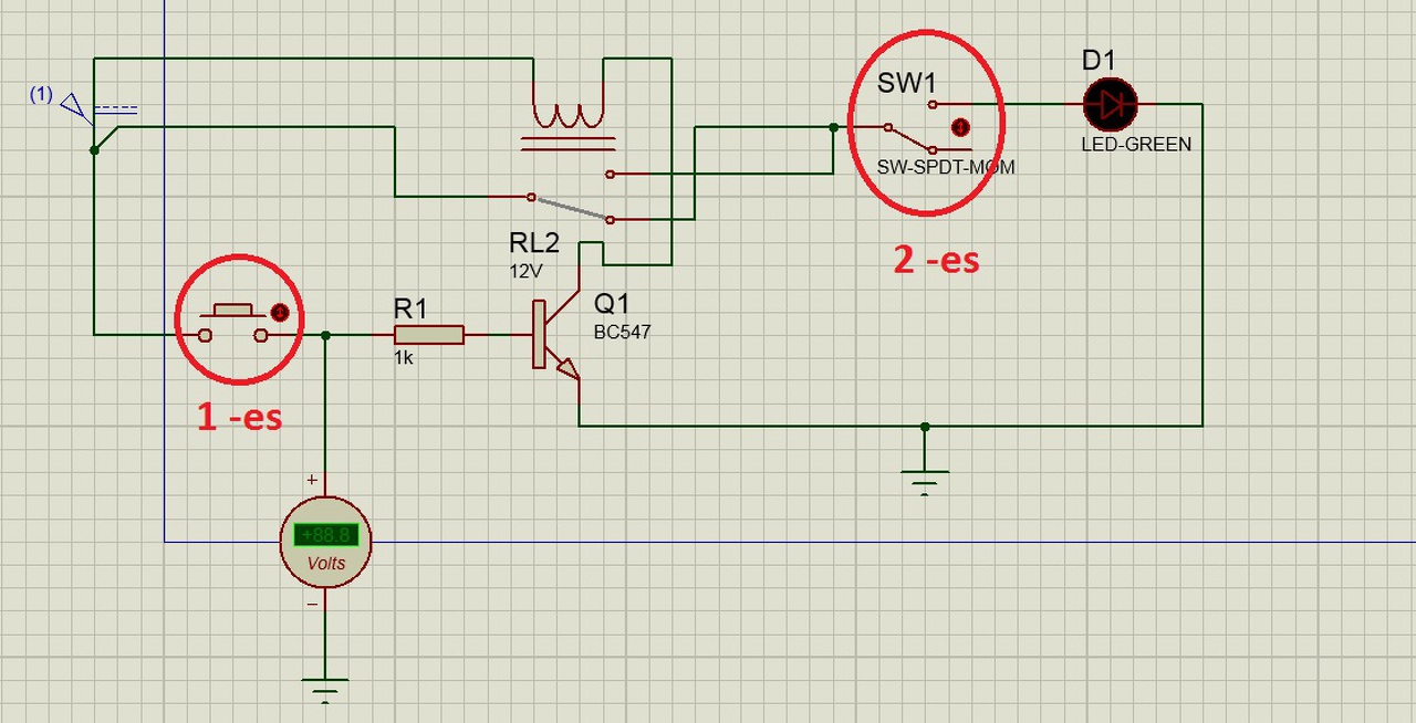 Mellékeltem egy kapcsolási rajzot, kellene egy kis segítség. Azt szeretném elérni, hogy az 1-es kapcsolóval függetlenül a 2-es kapcsoló állapotától a ledet fel és le tudjam kapcsolni, de a 2-es kapcsolóval is szeretném függetlenül le és felkapcsolni ugyanazt a ledet. Nem tudom mennyire érthető, valaki ötlet?