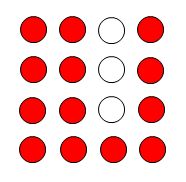Soronként meg elég érdekes. A vízszintes sorok kigyulladnak, a függőleges meg az elsőnél 1, a másodiknál mind, a harmadiknál 1 a negyediknél ismét 4 világít. Kicserélem az egyedül világítókat.