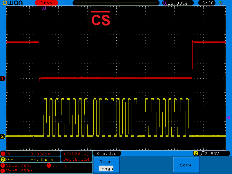 Idézet: Az ábráról nekem úgy tűnik, hogy a Din jel túl hamar leesik 1-ről 0-ra. Biztos, hogy jól állítottad be az SPI módot? (CKP=0, CKE=1 jelenti a "mode 0,0" választást) „Lemértem mindent.”