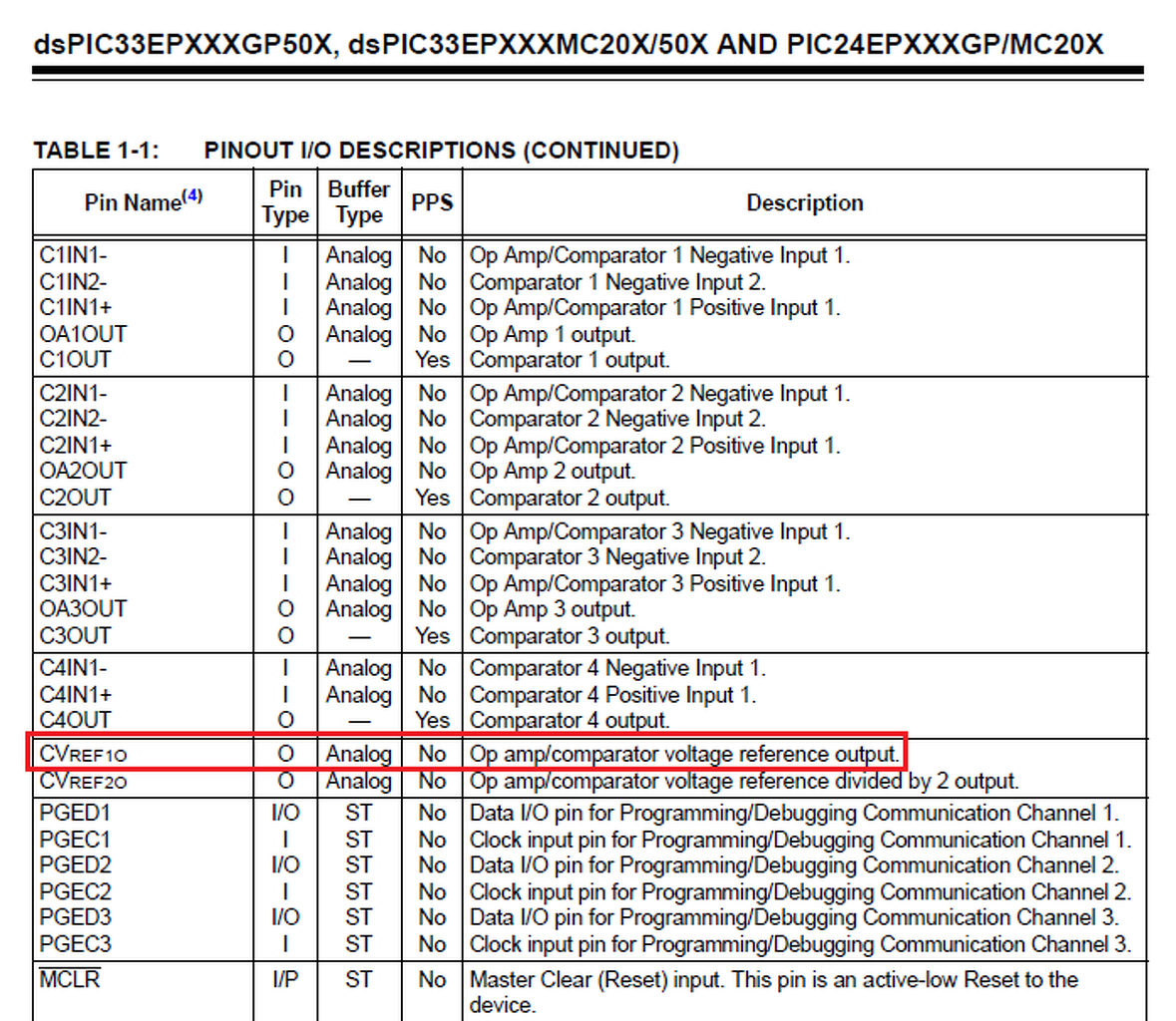 A CVREF1O az analóg kimenet. Minden analóg funkcióra képes láb (nem csak az ANx lábak!) induláskor analóg módban van, ezért kell tiltani azt.