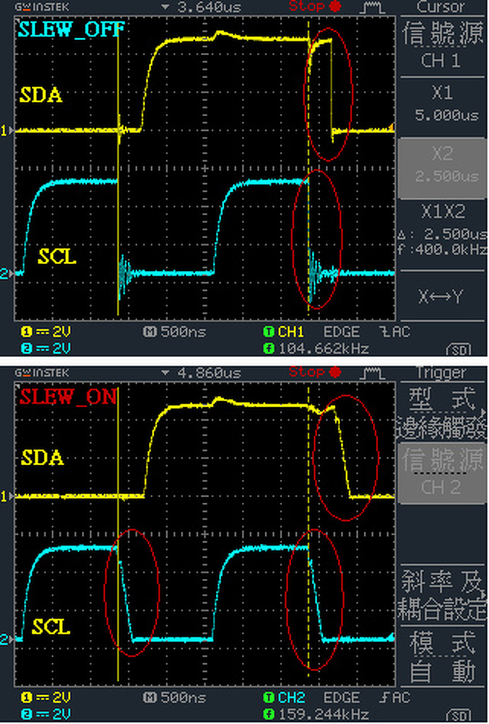 I2C-nél a "Slew Rate Control" bekapcsolása csökkenti a vonalon lévő négyszög meredekségét, ezáltal nem lesznek mindenféle nemkívánatos zajok. Neten találtam róla egy elég beszédes képet: Bővebben: Link Szerk.: high-speed módnál van csak jelentősége. A hozzászólás módosítva: Máj 12, 2016