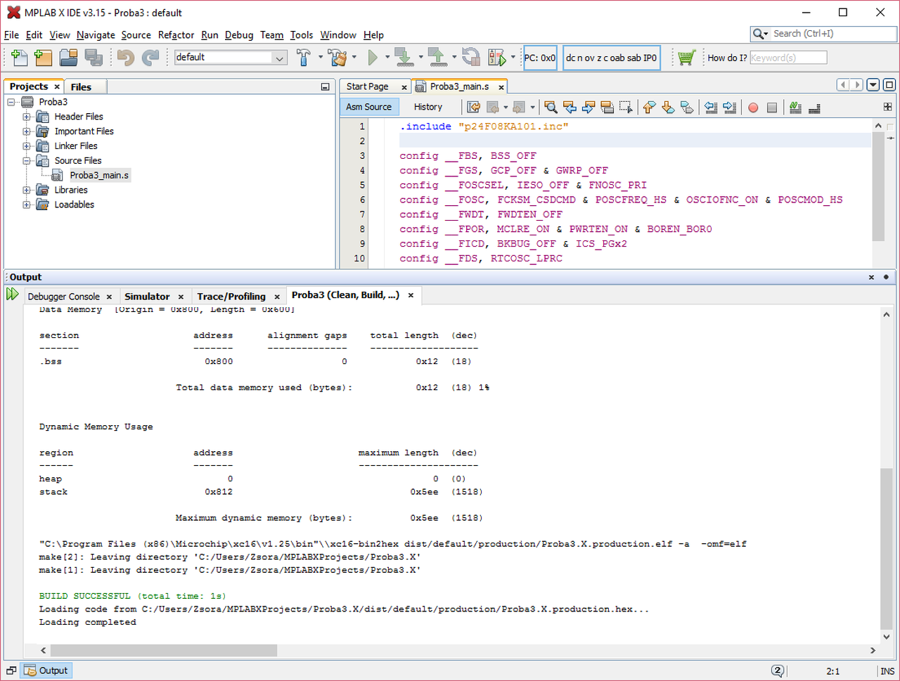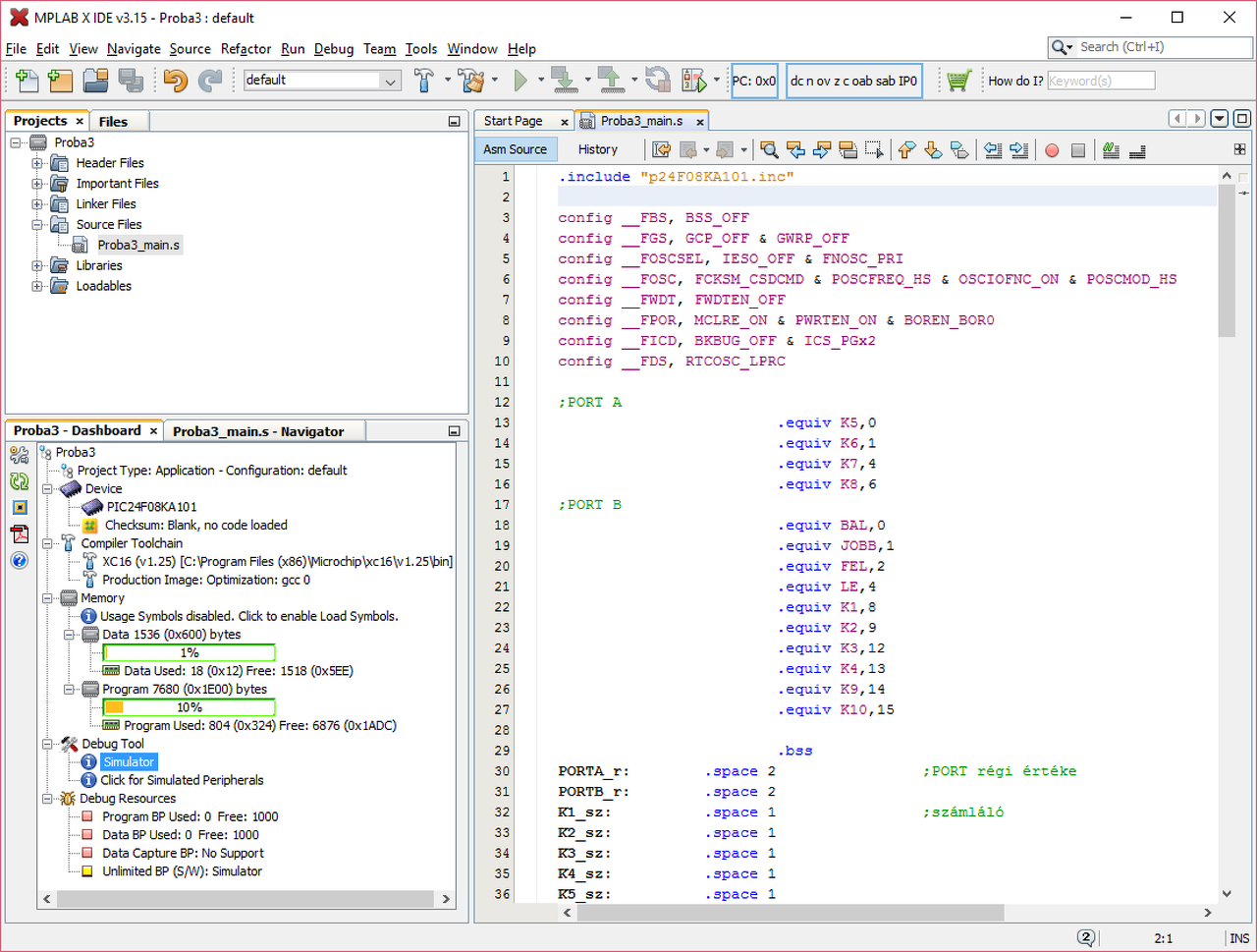 Hogyan tudok XC16-os fordítóval lefordítani egy assembly kódot? Mert én próbáltam de nem akart menni. Létrehoztam az MPLAB-ban egy új projektet és egy .s nevezetű fájlt amiben a kódot írom. A projektet amikor létrehoztam akkor a fordítónak az XC16-ot választottam. Esetleg privátban tudnál segíteni hogyan tudom megcsinálni?