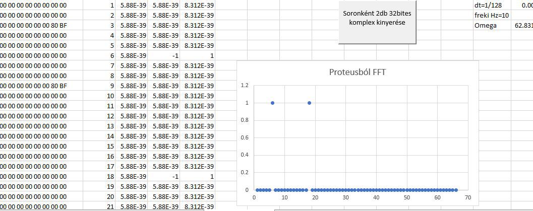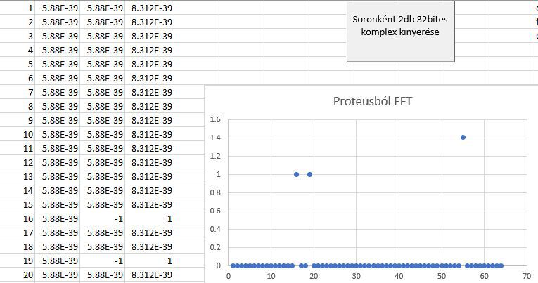 Átalakítottam a kódomat, de még nem jó sajnos. A srác kódjai nálam nem mennek pontosan, de sok hibát kijavítottam vele. -Ami működik + tapasztalatok: 1: A nyers adatokat float tömbben kell tárolni. 2: Utána normálni kell, hogy -0.5 és 0.5 közé essen, de úgy, hogy a lehető legjobban megközelítse azokat. Sima 0.1x szorzás ilyesmi nem játszik. 3. Miután a normálás megtörtént át kell adni a fractcomplex formátumú jel tömb real partjának. 4. Twiddle faktor. (megcsináltam excelben, kijönnek az eredmények szépen!, ha -sin() t használok) 5. FFTComplexIP 6. BitReverseComplex Nálam a hiba szerintem az FFTComplexIP-nél, vagy már a memória foglalásnál kezdődik. Ha másképpen foglalom a memóriát, akkor változnak az eredmények is. Proteusban csak DSPIC33FJ32MC202-t tudok szimulálni, de nekem itthon DSPIC33FJ128MC202-m van, de nem tudom egyelőre az FFT-t futtatni rajta, bár azt kellene inkább már szerintem... A memória foglalások: N=128