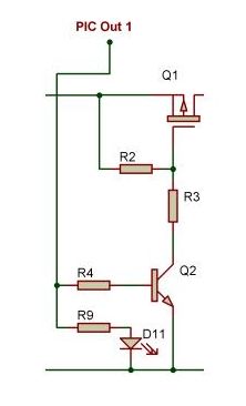 Amikor vki ledsort csinál PIC-el, akkor ott 8 LED van, LED-enkéne, 1-1 (gondolom) 330R el.. Tehát ha azt elbírja, ezt is elkell. Simán!!! Ja és csak akkor kezd melegedni, ha a kimenetre kiadta a jelet, tehét kinyit a tranyó, és így a fet is. Lehet, h vissza jut vmi a kimenetére?S: