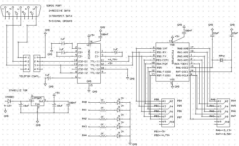 Én egy korábbi témámat szeretném folytatni(469). A kapcsolást módosítottam a javaslatok alapján. A problémám most az,h. a pic csak az RA0-RA3 portokat vezérli.További gond, hogy a max 11-es és 12-es lábán lévő fesz az RB1,RB2 kimenetet állandóan 5v körül tartja a többi láb nem vezérelhető.Az asm kódot a parsic állította elő. Akinek van ötlete, vagy csinált már ilyet kérem segítsen.