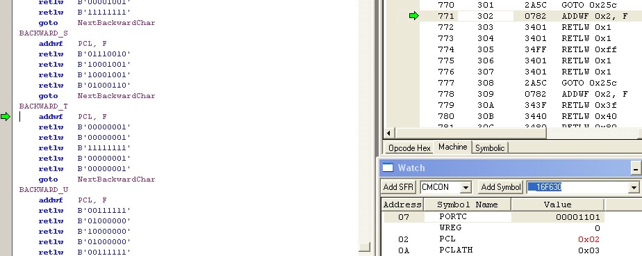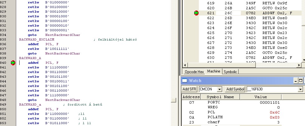 Tehát ha úgy gondolod, szívesen segítek az MPLAB úton elindulni, és azt hiszem teljes bizonyossággal kimondhatom, hogy nem csak én! A 11,12 lábon már említettem, hogy nem baj hogy ott kb. 5V a fesz... Még a generált ASM-ról annyit, hogy teljesen áttekinthetetlen, látszik, hogy egy program generálta. Ezt sokkal kevesebb sorból is meg lehet oldani.