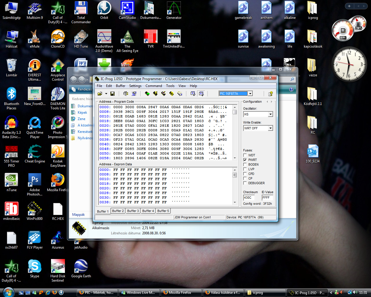 Ezt az égetőt használom: Bővebben: Link Egy angol nyelvű fórumon olvastam, hogy neki az icprog beégette a programot, de ki már nem tudta olvasni, és utána viszont ment a kapcsolás. Általában amikor visszaolvasom a programot, csak pár karakter jelenik meg az első sorban. Ha a programozás közbeni ellenőrzést választom, akkor azt mondja OK