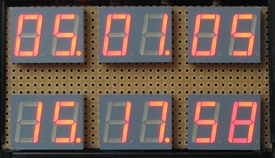 - 75 ohm-ok vannak a szegmensekkel sorban (ezek szerint a 33-akon csak gondolkodtam a PICkit2 tapasztalatai alapján, de a végén elvetettem). - A PIC-ben nagyjából fél volt "marad", a 75 ohm-on 2V esik, így a LED-re és a digit kapcsoló tranzisztorra esik a maradék 2.5V. A soros ellenálláson eső 2V 26mA-es áramot jelent (kicsit csodálkozom is, hogy ekkora áram kivételénél nem esik jobban a kimenet). - A PIC 12MHz-ről megy (egy 18F2321-ről van éppen szó), és gyakorlatilag "jéghideg". - Kingbright SA52-11GWA kijelzőket használok, adatlap szerint ennek (zöld) a maximális DC árama 25mA, az impulzusáram maximuma 140mA (0.1ms-os impulzusok, 1/10 kitöltési tényezővel). Gyakorlatilag tehát jelenleg olyan beállításban mennek a kijelzők, hogy így mehetne DC-vel, nem multiplexelt módon is, mégis kielégítő a fényereje. Lehet, hogy extra meghajtás nélkül a PIC-ből nem is igen lehetne "hivatalosan" többet kivenni (portra és tokra vonatkozó maximumok miatt).