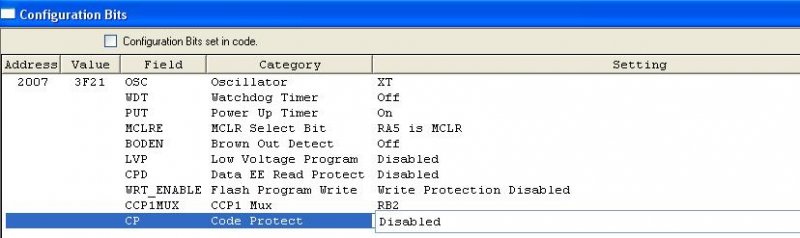 Sziasztok, már egy ideje szórakozok egy 16F819-es DIP tokos PIC-kel, de valamiért nem akar szépen elindulni. Én az oszcillátorra gyanakszom, mert ha azt piszkálom, akkor végrehajt pár utasítást. Ha a konfigurációs biteknél beállítom hogy XT oszc. És hardveresen ráakasztok egy 4MHz-es kvartzot 2db 22pF-os kondi kíséretében, akkor az úgy jó? Ill. a többi konfig. bitet mire állítsam? (Hogy biztosan elinduljon. A tápfesz.: 4,6V (PK2 klón) Már elég régóta szívok vele és már nagyon idegesít. (Az adatlapot bogarászva találkoztam új regiszterekkel. pl. OSCCON ill. még 1-2) Ezeket be kell állítani ha XT oszci van rajta? Szerintem nem, de ki tudja. Jelenleg így van beállítva.