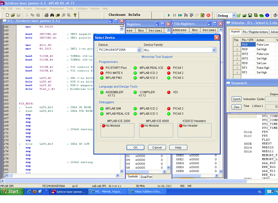"A PK2-t ne programozónak állítsd be, hanem debuggernek és így töltsd be a programot" Ezt a beállítást valahogy nem találom. Tudnál segíteni, hogy melyik menüpontban van ez a beállítás?