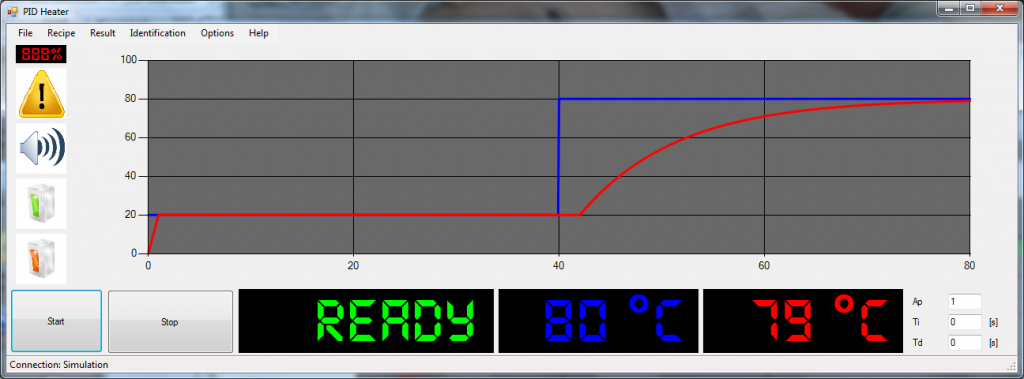 Kezdeti sikereket érek el az önhangolós PID szabályozóval. Kénytelen voltam átírni PC-re mivel azon sokkal kényelmesebben és gyorsabban tudok fejleszteni. A PIC jelenleg a PID szabályozást csinálja, illetve a PC-nek felküldi a mért hőmérsékletet. A PC pedig megjelenít illetve az önhangolást végzi.