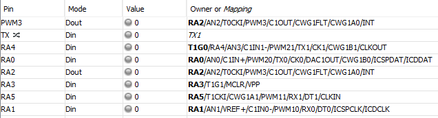 Segítséget kérek! Nem sikerült az PORTA4-es pint kimenetnek konfigurálnom. MPLABX-et használok, PIC12F1572-el. (MPLABX simulátor-hiba lenne? PWM valós kimenet kis hibával megfelel a számítottnak, a "Logikai Analizátor" szerint ötször nagyobb!)