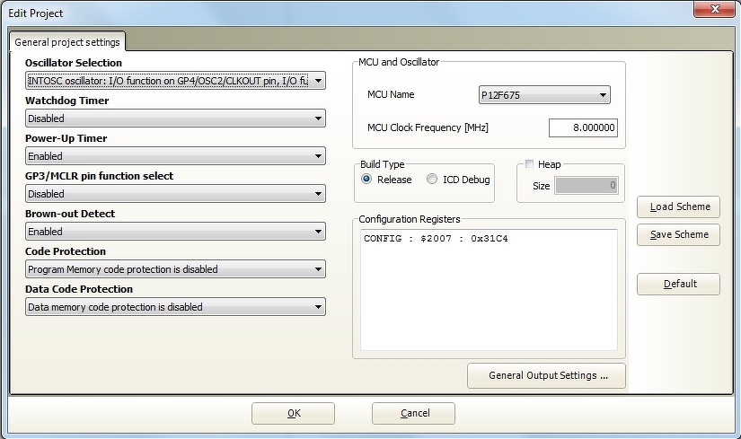 #define nyg GPIO.GP3 vagy #define nyg GP3_Bit nálam 7-es fordítóval, Proteus-ban működik. Proteus-ban kézzel kell beállítani (legalábbis nálam) a Program Configuration Word-öt.
