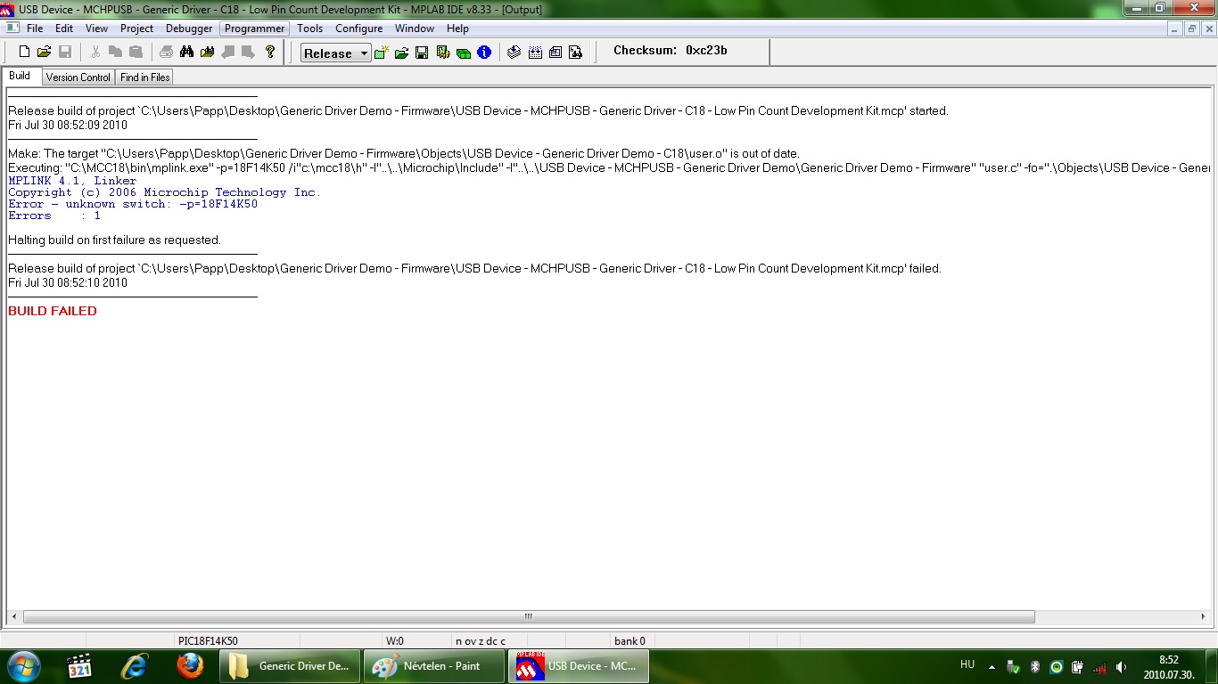 Miért kapom ezt a hibaüzenetet (csatolva). ![]() Az MPLAB-nak és a C fordítónak már több verzióját is kipróbáltam.