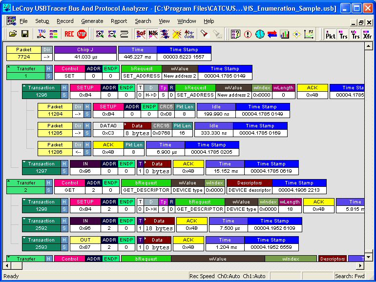 Sokat keresgéltem a neten, és sehol nem találtam folyamatábrát, vagy annak a leírását, hogy milyen csomagok és milyen tartalommal közlekednek az enumerációs folyamat alatt. (eszköz bedugásakor: felismerés, rendszerbeállítás) (erre nagyon jó volna az USB trace, de sajna csak XP alatt megy, nekem meg win 98 am van, xp hez meg sajna nem mindennap férek hozzá!) Persze van elgondolásom, de javítsatok ki csomagügyben (csak a talált utalások alapján gondolom így): 1. USB bus reset kiadása a host által, miután felfedezett a device D+ vagy D- ágán felhúzóellenállást. 2. ezután küldi a host a GET_Descriptor -t a device nek. Csomag elejét pl. így képzelem: 0x80 = B'1000 0000' adat_irány: deviceről a host fele (1) /tehát a GET re adott válasz irányát mutatja szerintem... 0x06 = kérés típusa 0xstb 3. USB portra host ismételt resetet ad ki. Itt nem világos milyért nem jön a GET re adott válasz, és milyért nem resetelünk bele a közepébe, ha mégis jönne? 4. most következik a SET_Address request 8 byte on. Ha jól tudom kezdetben minden eszköznek 0 ás címe van. Tehát ad a host cimet a device nek max 127 ig. 5. a leírás szerint most ujra GET_Descriptor jön de miélyért? (A korábbi milyért nem jó) 6. GET_Configuratin -t olvasom a továbbiakban, de nem derül ki semmilyen folytatás.... No szóval eláéggé bizonytalan vagyok, akinek lenne ötlete kérem segítsen!