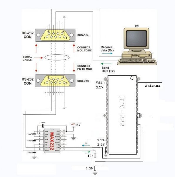 Egyelôre azt probaltam meg, hogy egy MAX232-vel (+ elenalasosztoval feszultsegszint etolással 5V-rol 3V-ra) oszekotem a gepel COM porton de semmi visszajelzés a bluetooth-tol Valami ötlet mi lehet a gond?