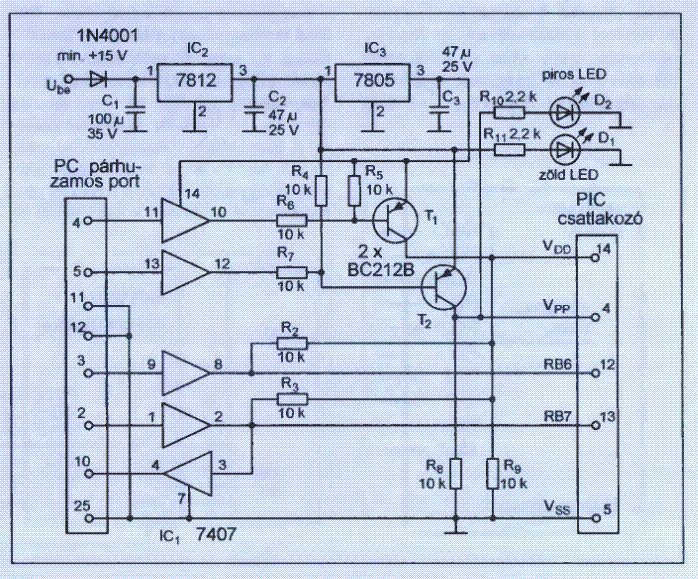 Kedves kollégák! Segítségüket kérném. Egy kis problémám akadt egy PIC égetővel. A mellékletbe feltöltött rajz alapján építettem egy LPT-re csatlakoztatható PIC égetőt. 16F877A-t szeretnék vele programozni, WinPic segítségével. A16f877a programozásakor "Programming failed" hibaüzenetet kapok, akár írni, akár olvasni akarom a kontrollert. Van itthon 16f84a kontrollerem, azt gond nélkül tudom ezzel az égetővel írni, olvasni. Mi lehet a hiba oka?