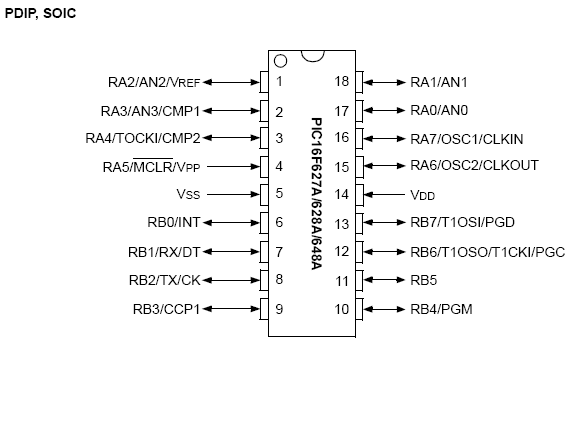 Én egy PIC16F628A -t szeretnék beégetni. A picet a következőképpen kötöttem. Pickit icsd kiosztása: 2. Vdd - 14-es láb 3. Gnd - 5-ös láb 4. Dat - 8-as láb 5. CLK - 7-es láb Ez így nem volt jó. aztán rátettem az 1-es icsd lábra - Vpp az ic 4-es lábát, de így sem tudom olvasni. Beteszek egy képet, a picem láb kiosztásáról. Légyszi segítsetek abban, hogy helyesen kössem be a pic-emet.