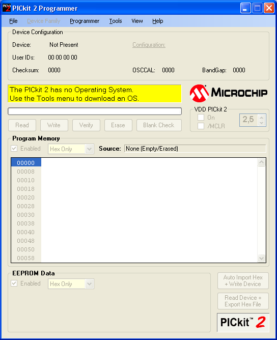 Mitől van ez a hiba égetés közben a PICkit 2 v2.61-ben? All protected (pirossal) Osccall: Bandgap A szilva féle pickit2 klónnal próbáltam egy PIC18F452-t beégetni, de nem sikerült. Majd megpróbáltam egy LPT-s égetővel is, ott valami mást ír ki hibának az égetőprogram(0x000000). Egy 18F4550-et és egy 18F2550-et kipróbáltam még egyből a hiba után, de azokat tökéletesen írja, olvassa és törli. Mit tudok ilyenkor tenni ezzel a 18F452-vel? Még nem találkoztam ilyen hibával. Előre is köszi! Üdv!