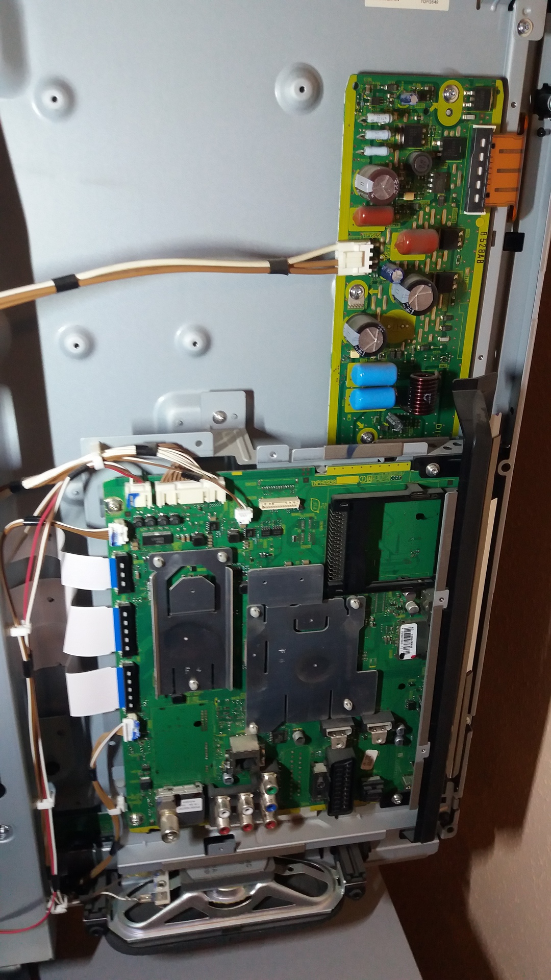 Az Y-driver (amit cseréltél) mellett balról van egy hosszú nyák, azon fekete IC-k. Ezek közül az IC-k közül pusztult el legalább kettő. Lehet, hogy a füst kijövetelének a helye is látszik az IC-ken. Ha mégsem ez a panel a rossz, akkor szalagkábel és egyéb csatlakozás-hiba is okozhat ilyet. Bővebben: Link De látom már a te esetedben az Y-al össze van építve a buffer.